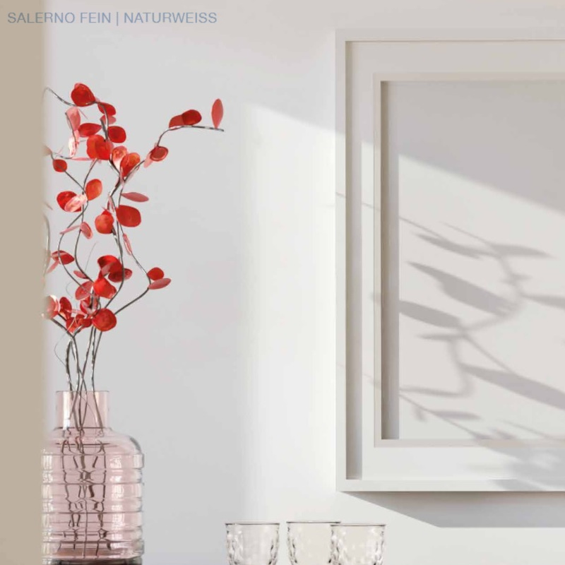SALERNO FEIN ist ein hochweißer Sumpfkalkputz für feinste geriebene oder geglättete Oberflächen. Auch glänzende marmorähnliche Wände können mit diesem außergewöhnlichen Material gestaltet werden.
