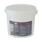 Dazu 100 g ABRUZZO TIEFGRUND in 2 Liter sauberes, kaltes Wasser mit Bohrmaschinenquirl gründlich einrühren. Unbedingt 30 Minuten reifen lassen, damit das Pflanzenprotein zu einem Kleber aufgeschlossen wird. Danach nochmals mit 3 Liter Wasser verdünnen und gut unterrühren.
